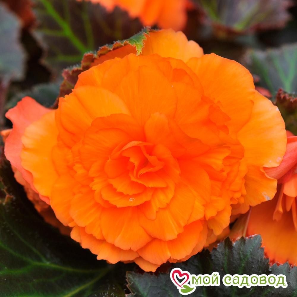Бегония махровая оранжевая – клубневое растение высотой 25-35см. Красивы ее зеленые сердцеобразные листья с неровно зубчатыми краями, прекрасны и махровые оранжевые цветки, похожие на розочки, диаметром до 11см. Бегония хороша для озеленения помещений, лоджий, балконов и для клумб, цветников и рабаток. В районах с мягким климатом разводят в открытом грунте, в более холодных районах высаживают на балконах или в саду только на летний период. Бегония любит рыхлый питательный грунт со слабокислой реакцией. Оптимальная схема посадки 20х30 см.Сделайте дренаж. Поливайте регулярно и умеренно. Раз в месяц подкармливайте минеральным удобрением. В период покоя обеспечьте прохладную зимовку. Чтобы растения зацвели к началу лета, посев на рассаду делают в январе-марте. Заделка не требуется. Просто равномерно распределите по рыхлому торфяному субстрату.