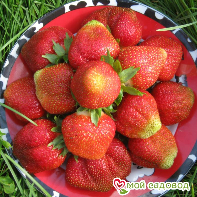 Ягоды крупноплодной клубники Виктории имеют крупный размер ягод. Техническая спелость наступает, когда ягоды приобретают ярко-красный окрас, но со временем он темнеет. Желтоватые семена средне углублены. Мякоть окрашена в розовый цвет, плотная, средней сочности. У неё приятный запах земляники средней интенсивности. Вкус этой клубники гармоничный, кисло-сладкий. Сорт формирует мощные кусты, пускающие многочисленные усы. Листья имеют крупные размеры и окрашены в интенсивный зелёный цвет. Цветоносы не отличаются силой и припадают под тяжестью плодов к земле. Посадка и уход за клубникой Посадка: осенью (с середины августа до середины октября) и ранней весной Освещение: яркий солнечный свет Почва: легкая – суглинок, супесь, чернозем или лесные, богатые органикой грунты с водородным показателем pH 5,7-6,2 Полив: утренний, с конца апреля – один раз в 10-12 дней, расходуя на каждый м² участка 10-12 л воды Подкормки: минимум три раза в год: ранней весной, в период бутонизации и в августе Обрезка: когда листья начнут желтеть, покрываться пятнами и сохнуть, их обрезают Размножение: усами (розетками), делением куста